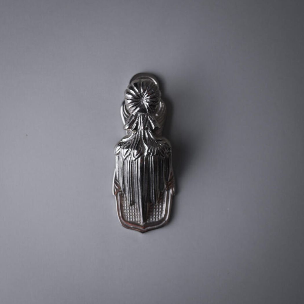Se nu lige her et fantastisk smukt vintagefund – en dekorativ vægklemme i sølv. Klemmen har en god tyngde, det er virkelig kram! En lille vintageperle, som er både fin og praktisk – til køkkenet eller kontoret.
